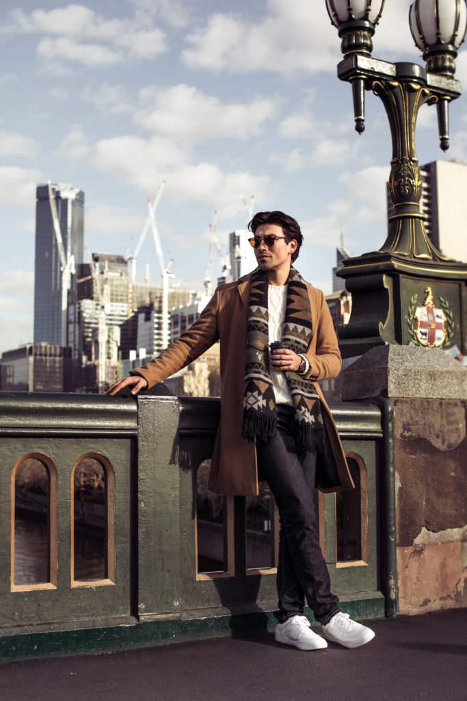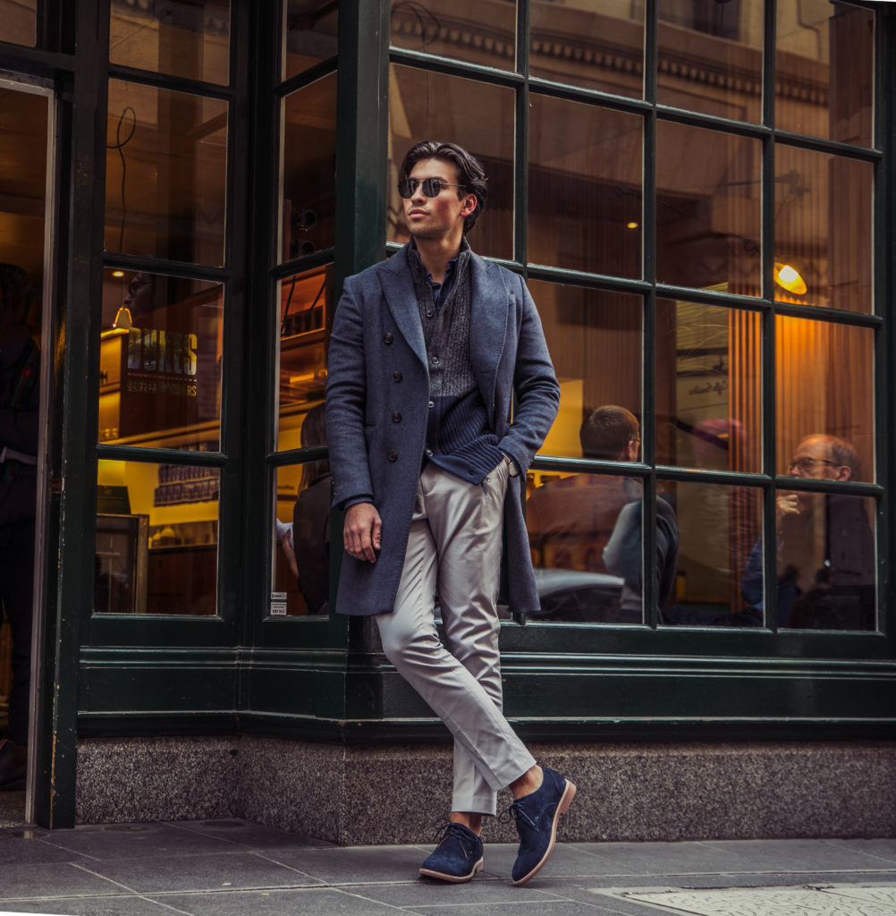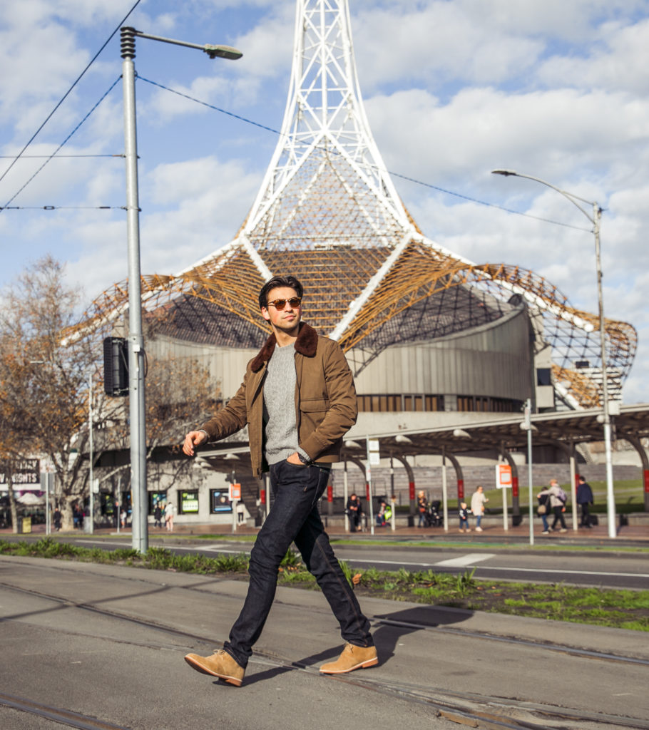 Featuring some of the most iconic locations in Melbournes landscape we worked through the new collection which features new and updated leather and suede boots, suede loafers and brogues as well as an update on the brands iconic sneakers featuring their new printed options. Fresh for winter the range offers seasonal colours like yellows and dark navys against contrasting whites and standard blacks. Styling the modern range was easy as we used the typical “modern mans” wardrobe with brands like MJ Bale, Anthony Squires, Jack London, ASOS, Quay Eyewear, Oxford Shop, Fossil, Moncler, Gucci, Politix, Rodd & Gunn & Ben Sherman in both dressed up and dressed down options.